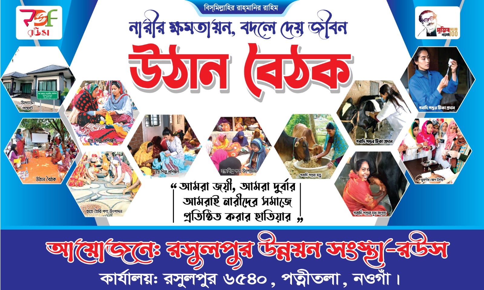 রউস সংস্থা'র উদ্যোগে নারীর উন্নয়নে উঠান বৈঠক ব্যানার